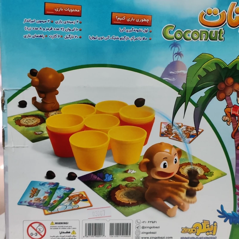 این بازی کوکونات دارای دو میمون با قابلیت پرتاب نارگیل های نرم و پلاستیکی به صورت منجنیق داخل لیوان ها می باشد