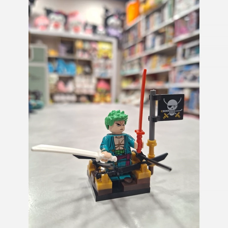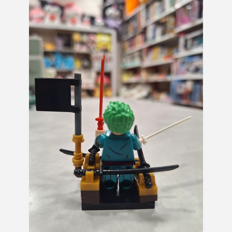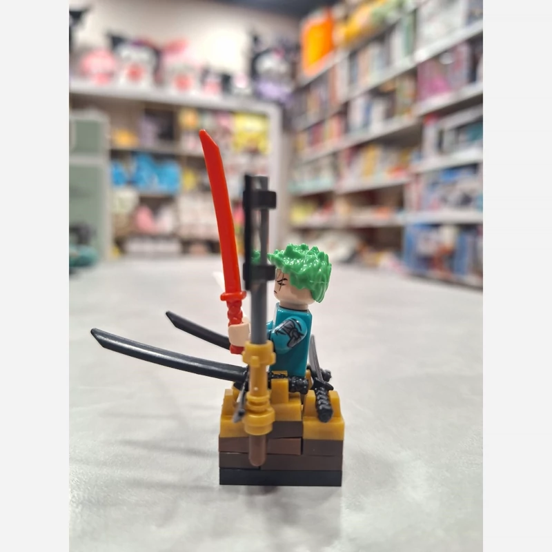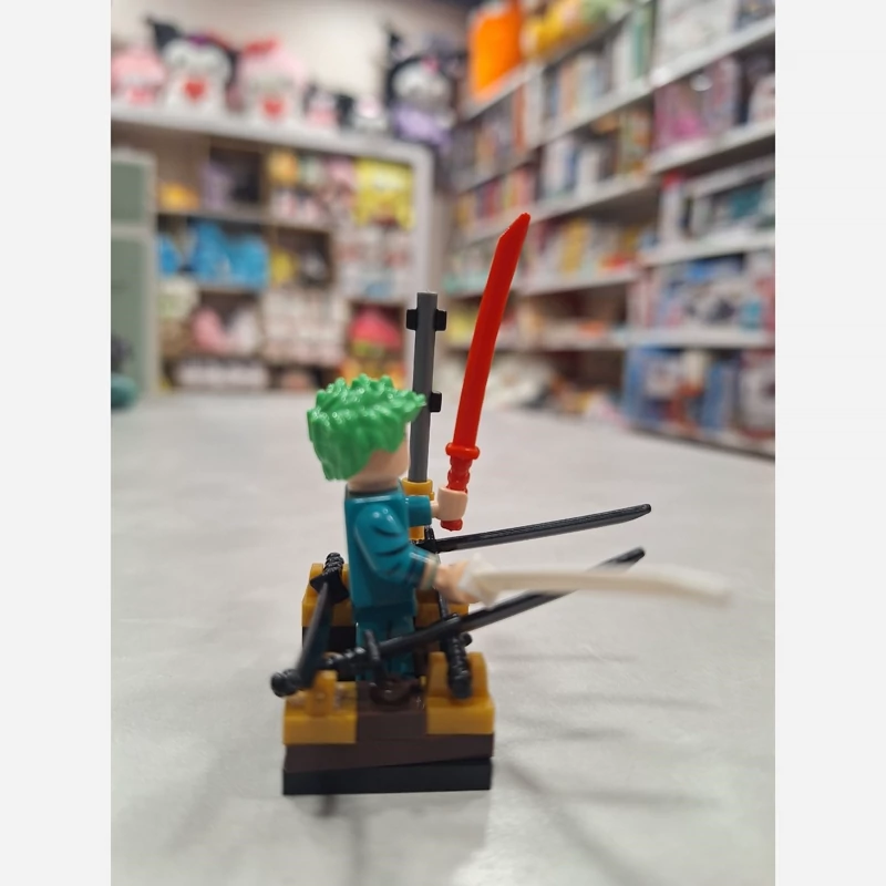 لگو اکشن فیگور زورو ار انیمه وانپیس تو آرک وانو حالت ببر که همراه با چهار شمشیر ساده و یک شمشیر قرمز و یک شمشیر سفید است و جایگاه های آنها وجود دارد.